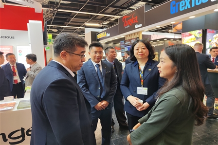 展臺首日即吸引了來自歐亞等產業鏈上下游參展企業和觀眾的持續關注。保利集團總經理助理,保利中輕黨委書記、董事長安勝杰來到中國食品院展臺,親切慰問參展員工,并前往安琪酵母、加拿大Saputo乳業公司、法國SILL SAS集團、荷蘭Salud Foodgroup Europe BV等相關展臺進行交流,與世界食品博覽會(Anuga)主辦方就未來有關合作進行交流,并接受主辦方專題采訪。