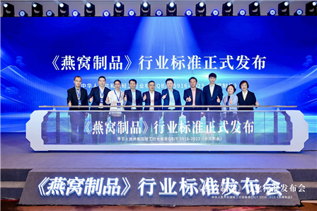 2024年4月12日,由全國食品工業標準化技術委員會罐頭分技術委員主辦、廈門市燕之屋絲濃食品有限公司協辦的《燕窩制品》行業標準發布會在北京召開。中國消費品質量安全促進會副理事長、原國家質檢總局執法督查司司長嚴馮敏,中國輕工業聯合會質量標準部副主任王旭華,中國罐頭工業協會理事長劉有千,中國食品發酵工業研究院黨委書記、總經理郭新光,廈門燕之屋燕窩產業股份有限公司執行董事兼副總經理等領導、行業專家、協會、科研院所、龍頭企業出席會議。