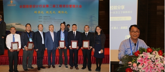 會議由中國勘察設(shè)計(jì)協(xié)會建設(shè)項(xiàng)目管理和工程總承包分會榮世立會長主持;中國勘察設(shè)計(jì)協(xié)會理事長施設(shè)致開幕詞、住建部工程質(zhì)量安全監(jiān)管司李如生司長作了專題發(fā)言。大會還對榮獲第八屆全國勘察設(shè)計(jì)行業(yè)優(yōu)秀工程項(xiàng)目管理和優(yōu)秀工程總承包項(xiàng)目的團(tuán)隊(duì)代表進(jìn)行了頒獎。海誠股份共有5個項(xiàng)目獲獎。其中:海誠股份承接的江蘇王子制紙有限公司新建年產(chǎn)80萬噸版紙項(xiàng)目年產(chǎn)71.4萬噸漂白化學(xué)闊葉木漿生產(chǎn)線及其配套工程和長沙子公司承接的南通經(jīng)濟(jì)技術(shù)開發(fā)區(qū)中水回用示范工程項(xiàng)目被授予工程總承包銀鑰匙獎;海誠股份承接的光明乳業(yè)股份有限公司日產(chǎn)2000噸乳制品中央自動控制技術(shù)生產(chǎn)線技術(shù)改造項(xiàng)目、利拉伐天津空港畜牧設(shè)備生產(chǎn)項(xiàng)目和長沙子公司承接的江門星輝造紙有限公司年產(chǎn)30萬噸高檔涂布白版紙工程被授予銅鑰匙獎。王子項(xiàng)目項(xiàng)目經(jīng)理龐建國、光明項(xiàng)目項(xiàng)目經(jīng)理馮毅、天津利拉伐項(xiàng)目項(xiàng)目經(jīng)理呂偉良、黃自力,南通中水回用工程和江門星輝項(xiàng)目項(xiàng)目經(jīng)理胡正陽和吳鳴分別上臺領(lǐng)獎。