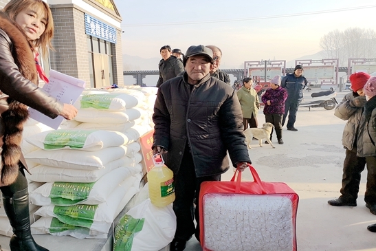 24日清晨,在副旗長(zhǎng)遲亞玲等旗有關(guān)負(fù)責(zé)同志陪同下,慰問組赴王爺府鎮(zhèn)希莊村,代表中輕集團(tuán)向希莊村捐贈(zèng)產(chǎn)業(yè)扶貧資金22萬(wàn)元,并為70歲以上老人送上米、面、油和保暖棉被等物資。王珂靈在寒冬中發(fā)表熱情洋溢的講話,傳遞中輕集團(tuán)黨委的深情厚誼,溫暖了貧困群眾的心田。