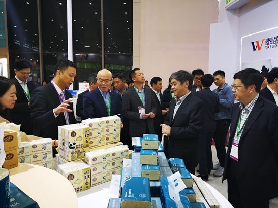 張萬順一行先后參觀了生活用紙和衛生用品全產業鏈的原輔材料、終端產品、生產裝備等國內外優秀成果展示,詳細詢問了乳霜保濕紙、可沖散紙巾等新產品以及歐克、凱信、輕良等國產機械裝備的創新成果和生產銷售情況。