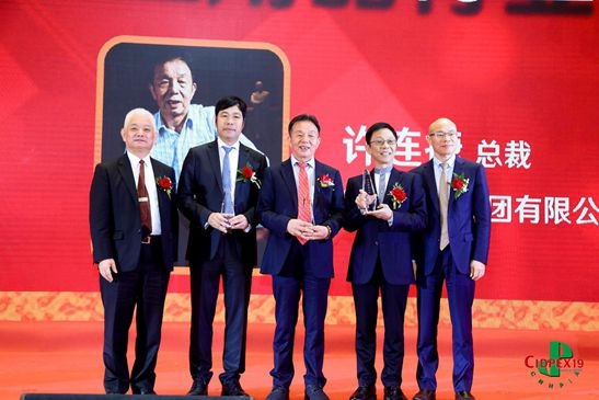 展會還特別設置了行業頒獎活動,集團公司領導張萬順、曹振雷為在行業內做出突出貢獻的中順潔柔紙業股份有限公司董事長鄧穎忠,福建恒安集團有限公司董事局副主席、CEO許連捷,維達國際控股有限公司董事長李朝旺頒發了行業奠基人獎。