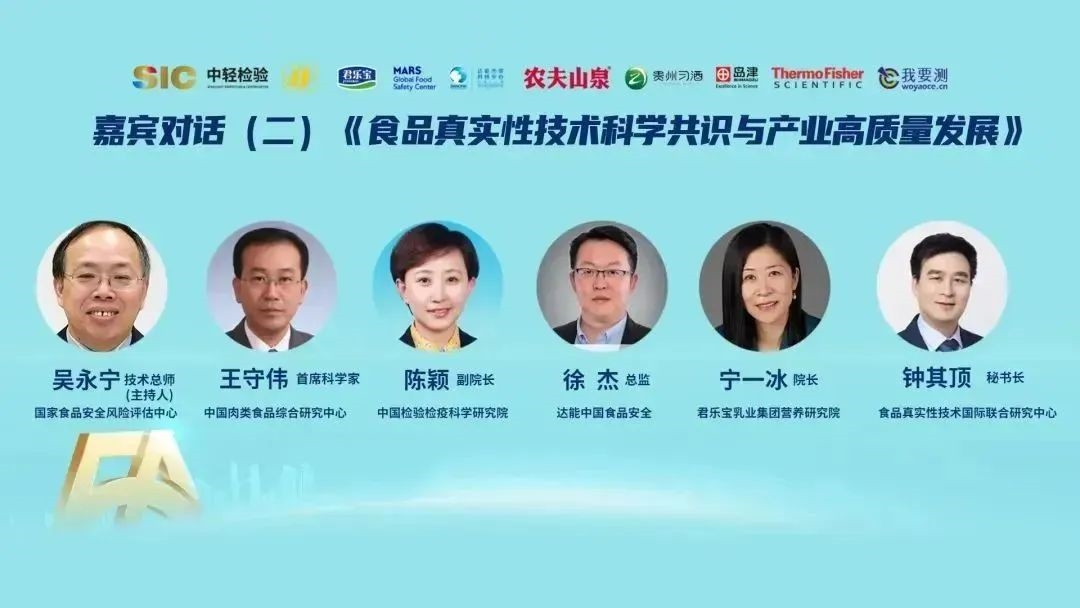 國家食品安全風險評估中心技術(shù)總師吳永寧、中國肉類食品綜合研究中心首席科學(xué)家王守偉、中國檢驗檢疫科學(xué)研究院副院長陳穎、達能中國食品安全總監(jiān)徐杰、君樂寶乳業(yè)集團營養(yǎng)研究院院長寧一冰、食品真實性技術(shù)國際聯(lián)合研究中心秘書長鐘其頂就“食品真實性技術(shù)科學(xué)共識與產(chǎn)業(yè)高質(zhì)量發(fā)展”展開對話,從各自研究領(lǐng)域探討食品真實性現(xiàn)狀、真實性發(fā)展趨勢和企業(yè)如何保障產(chǎn)品品質(zhì)安全、真實。