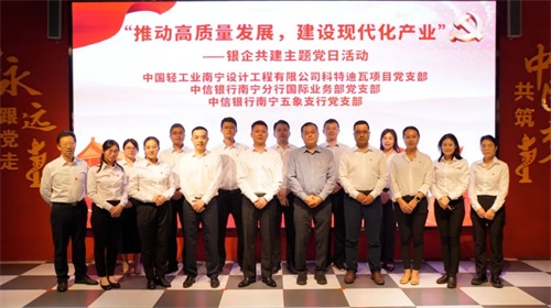 中國海誠南寧公司科特迪瓦項目黨支部與中信銀行南寧分行國際業(yè)務(wù)部黨支部、中信銀行南寧五象支行黨支部開展銀企共建主題黨日活動。