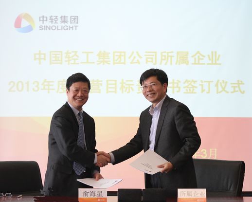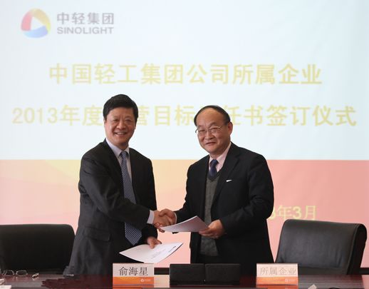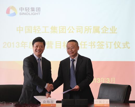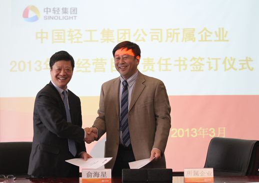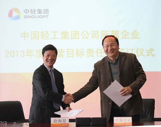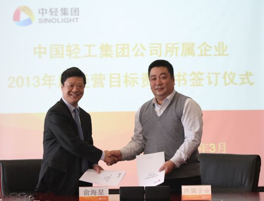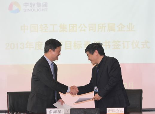 俞海星總經理與中輕對外公司總經理王向陽簽訂目標責任書