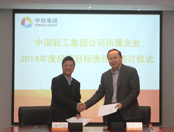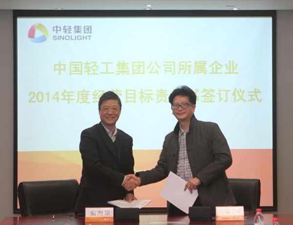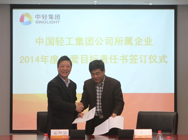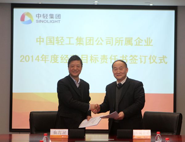 集團公司總經理俞海星與造紙院院長曹春昱簽訂目標責任書