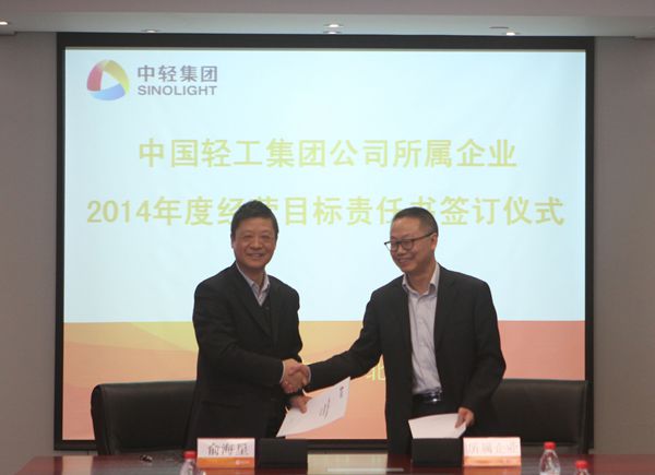 集團公司總經理俞海星在儀式上代表集團公司與所屬11家二級企業主要負責人簽訂了2014年度經營目標責任書。