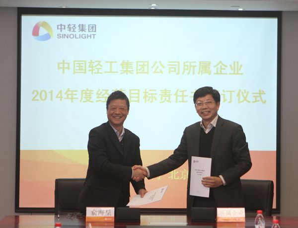 集團公司總經理俞海星與中輕物產公司總經理錢小林簽訂經營目標責任書