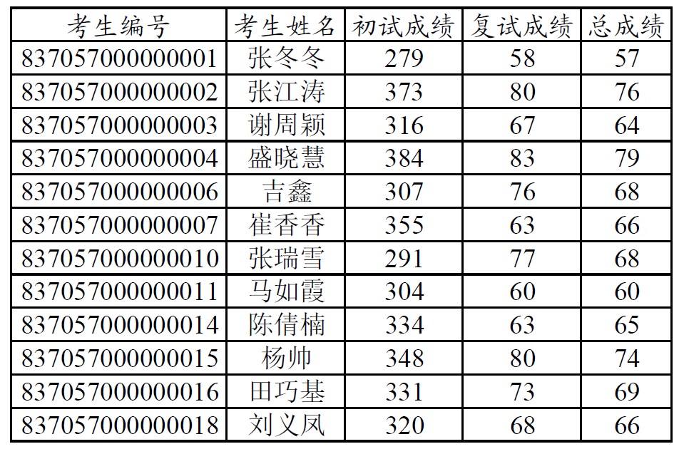 根據《中國食品發酵工業研究院2017年碩士研究生復試錄取工作辦法》規定,經筆試、面試,現對我院參加2017年碩士研究生復試人員的復試成績和總成績進行公示(擬錄取名單將在體檢結果出來后公示)。