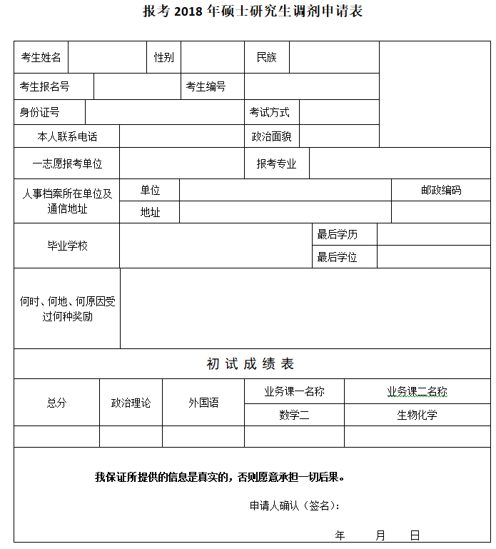1.欲調劑我院攻讀研究生的學生,請認真填寫附件:《調劑申請表》,并將掃描件發(fā)送至郵箱:ffhr@cnif.cn。注意:簽名處須本人親筆填寫。