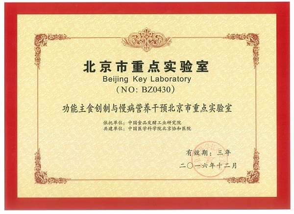 實(shí)驗(yàn)室由中國食品發(fā)酵工業(yè)研究院與北京協(xié)和醫(yī)院共同合作建立,圍繞食品質(zhì)量安全和慢病問題,旨在構(gòu)建“原料安全、制造安全、營養(yǎng)安全”的基礎(chǔ)研究和應(yīng)用技術(shù)體系,實(shí)現(xiàn)主食營養(yǎng)干預(yù),為慢病防控提供營養(yǎng)解決方案,為企業(yè)提供技術(shù)支持服務(wù)。實(shí)驗(yàn)室在食品原料安全和功能因子研究、功能主食安全制造與核心裝備創(chuàng)制、功能主食安全評(píng)價(jià)與臨床應(yīng)用以及營養(yǎng)安全研究與作用機(jī)制等領(lǐng)域,取得了重大突破,尤其是在新食品原料的安全性評(píng)估以及物性數(shù)據(jù)庫、功能因子的安全性制備以及活性穩(wěn)態(tài)保存與靶向遞送、慢病人群膳食模型、營養(yǎng)基因組學(xué)與腸道微生態(tài)調(diào)控機(jī)理等方向處于行業(yè)領(lǐng)先水平,填補(bǔ)了多項(xiàng)國內(nèi)空白。此外,實(shí)驗(yàn)室創(chuàng)新性地提出了“功能食品主食化”的理念,創(chuàng)制了適用于不同人群的營養(yǎng)功能主食(米、面、粥、代餐包),建立了功能主食與營養(yǎng)干預(yù)技術(shù)平臺(tái)。