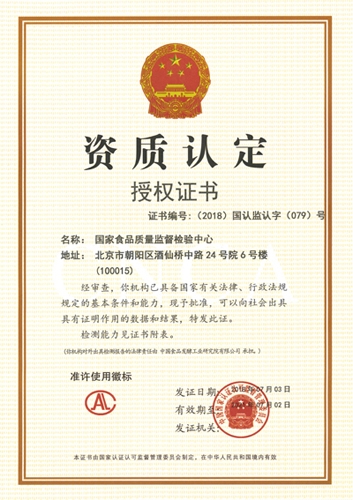 2011年,經國家主管部門批準成為全國首批104家食品復檢機構之一。